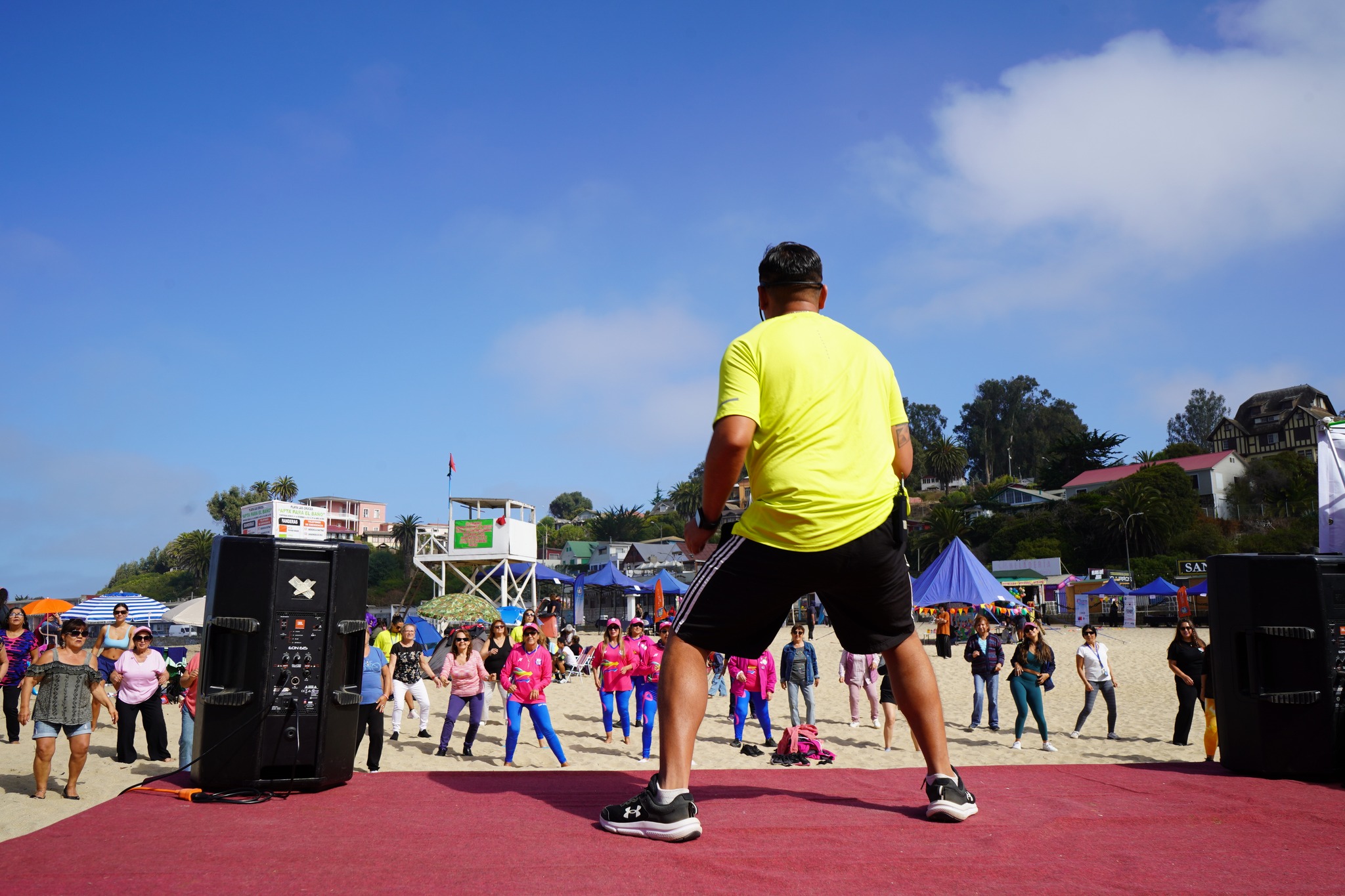 Disfrutamos de baile entretenido que puso a todos en movimiento, entrenamiento funcional para mantener la energía alta, y una exhibición de deportes acuáticos como bodyboard que emocionó a los presentes con su dinamismo junto al mar.